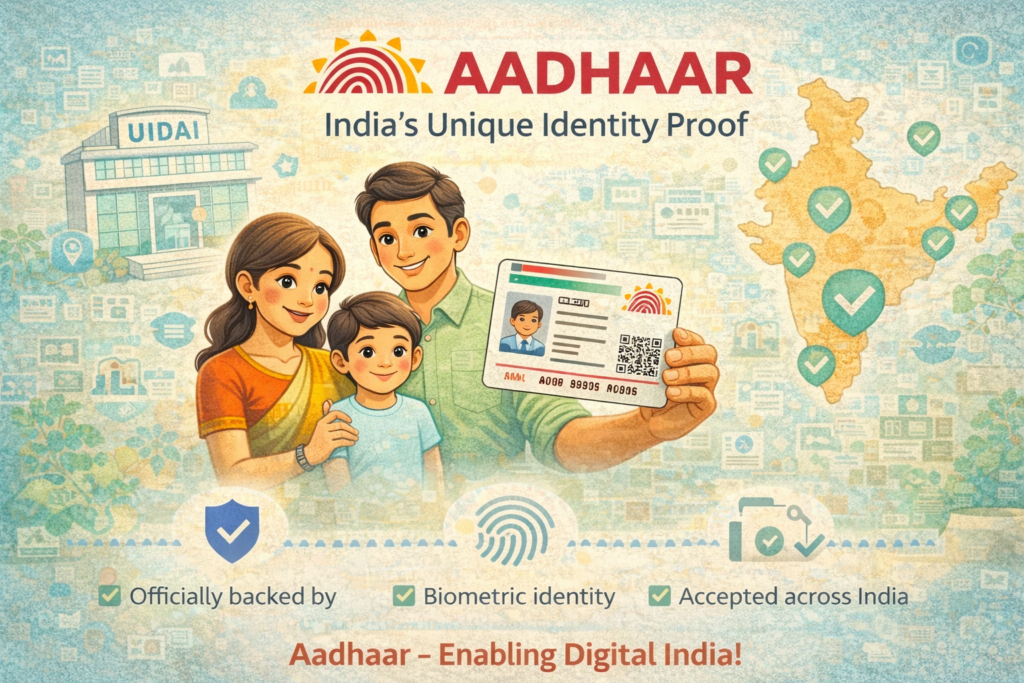 In the education context, Aadhaar supports accurate identification and smooth access to multiple Digital India platforms used by schools and families.